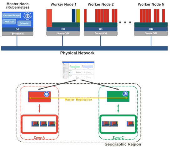 - Per fornire la disponibilità del servizio previsto, i nodi Master vengono replicati in due o tre zone all’interno di una regione geografica
