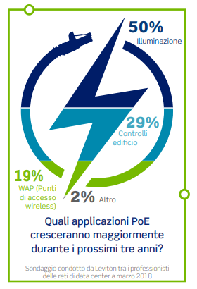 Ora il PoE comprende un’incredibile gamma di dispositivi e applicazioni e, grazie a questa tecnologia, la strada verso edifici “intelligenti” più connessi diventa sempre più percorribile. La ricerca di modalità di illuminazione più intelligenti rappresenta uno dei fattori trainanti e secondo le previsioni di Gartner Research il 70% delle installazioni luminose dei nuovi edifici commerciali implementeranno la tecnologia di illuminazione intelligente entro il 2020.