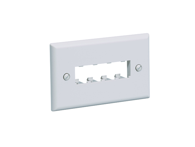Placca autoportante passo 503 a 4 posizioni con attacco tipo Keystone per prese dati CCS schermate e non schermate di categoria 5E, 6, 6° o adattatori fibra standard Keystone.