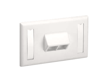 Placca Panduit NetKey orizzontale inclinata con fissaggio a viti. Accetta quattro moduli NetKey. Con etichette scrivibili.