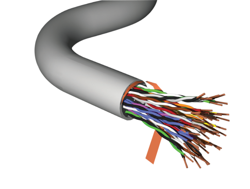 Il cavo telefonico Leviton di Categoria 3 a 25 coppie è realizzato con conduttori isolati in Poliolefina da 0,51 mm disposti in una o più unità di doppini intrecciati.