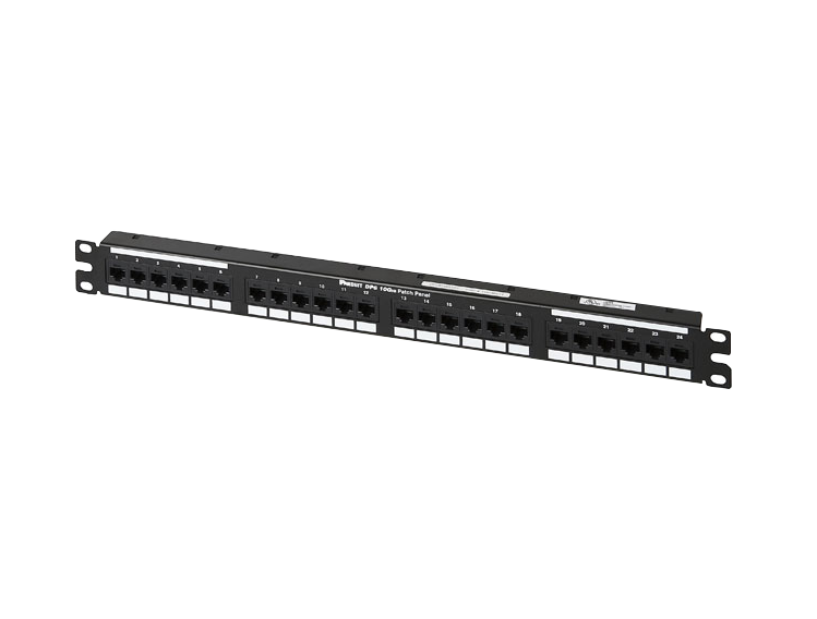 Il patch panel ad incasso di Categoria 6A/Classe EA con 24 porte è montabile su rack da 19” e 23” e include etichette adesive codificate per schemi di montaggio T568A e T568B. Le porte sono facilmente identificabili tramite numeri stampati e aree per per la scrittura.