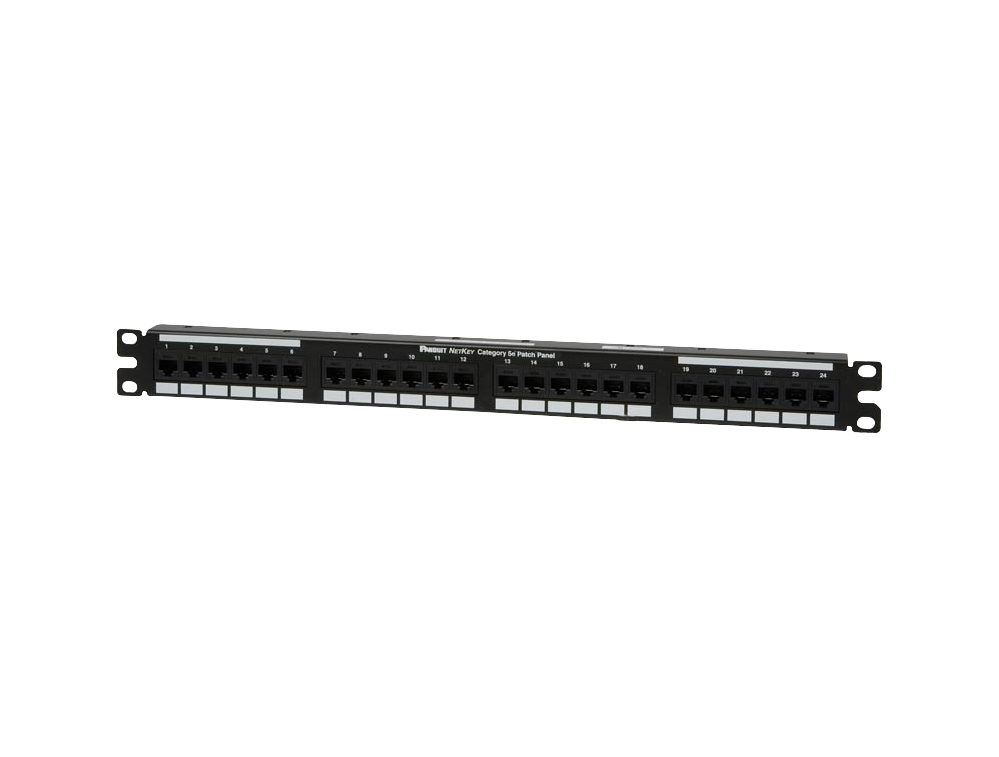 Il patch panel ad innesto di Categoria 5E / Classe D a 24 porte termina i cavi non schermati a 4 coppie attorcigliate 22-26 AWG, 100 ohm, e viene montato su rack standard TIA/EIA da 19”. L’attrezzo ad innesto è in grado di terminare ciascun conduttore con un’ottima performance. Schemi di cablaggio T568A e T568B codificati per colore inclusi.